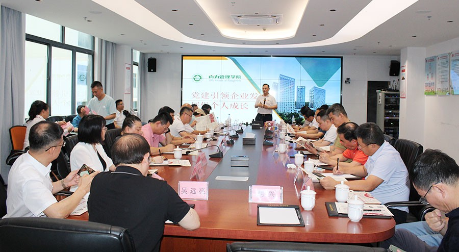 智能家居展廳參觀結(jié)束后,高企聯(lián)企業(yè)家們來(lái)到會(huì)議室,尚為集團(tuán)董事長(zhǎng)胡興為企業(yè)家們就高質(zhì)量黨建引領(lǐng)企業(yè)高質(zhì)量發(fā)展及個(gè)人發(fā)展主題,分享了尚為黨建學(xué)習(xí)的部分核心成果。胡興就企業(yè)發(fā)展和個(gè)人成長(zhǎng)提出的四大問題引起了企業(yè)家們的深思,在逐步解答的過程中贏得了一陣陣的熱烈掌聲。